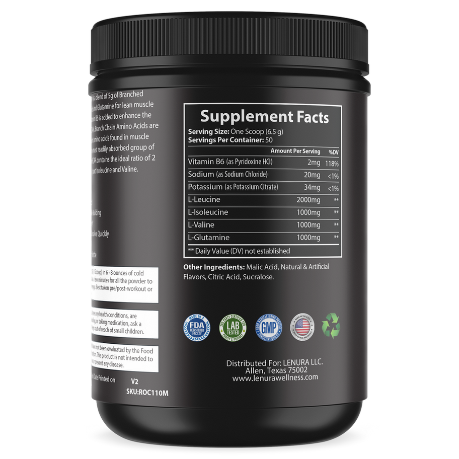 Lenura BCAA, Lemon Lime delivers essential branched-chain amino acids in a clean, refreshing formula designed for training and recovery. With a proven 2:1:1 ratio, added glutamine, and light electrolyte support, this premium amino blend supports endurance, hydration, and muscle recovery without stimulants or excess.